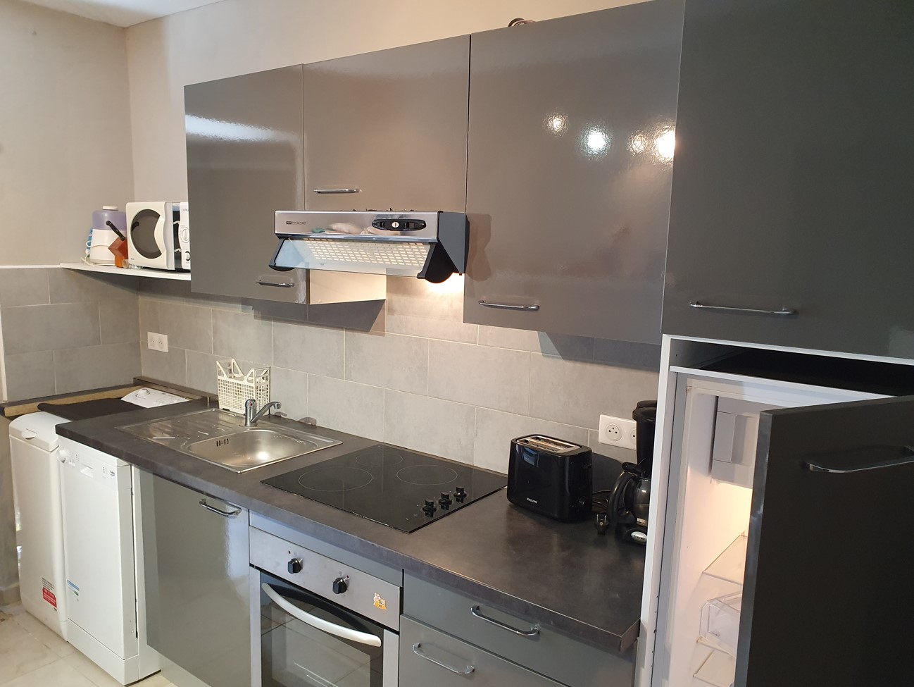 Équipements : lave-vaisselle, lave-linge, micro-onde, four traditionnel, réfrigérateur avec compartiment congélation, sèche-cheveux, télévision.